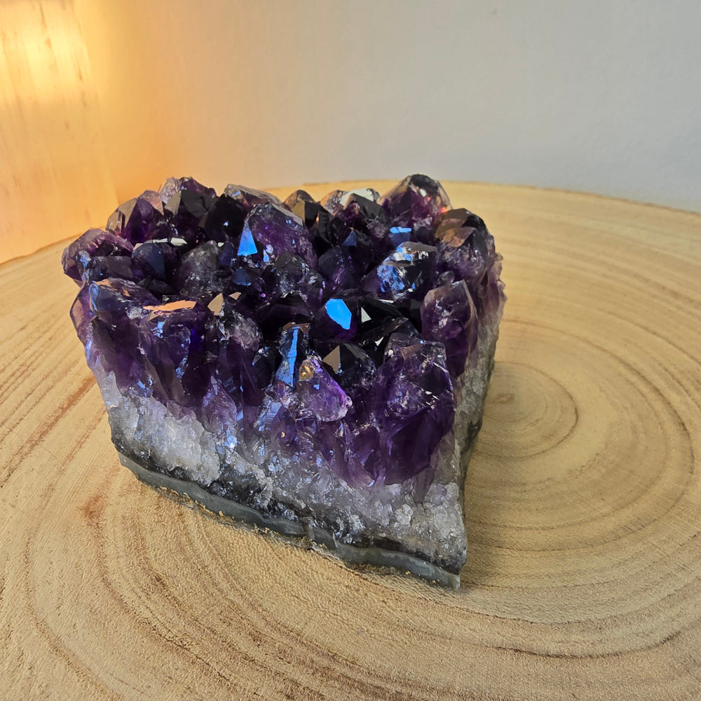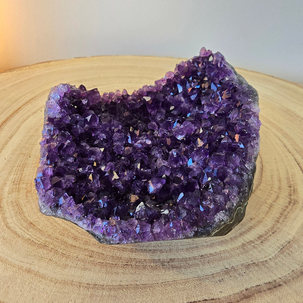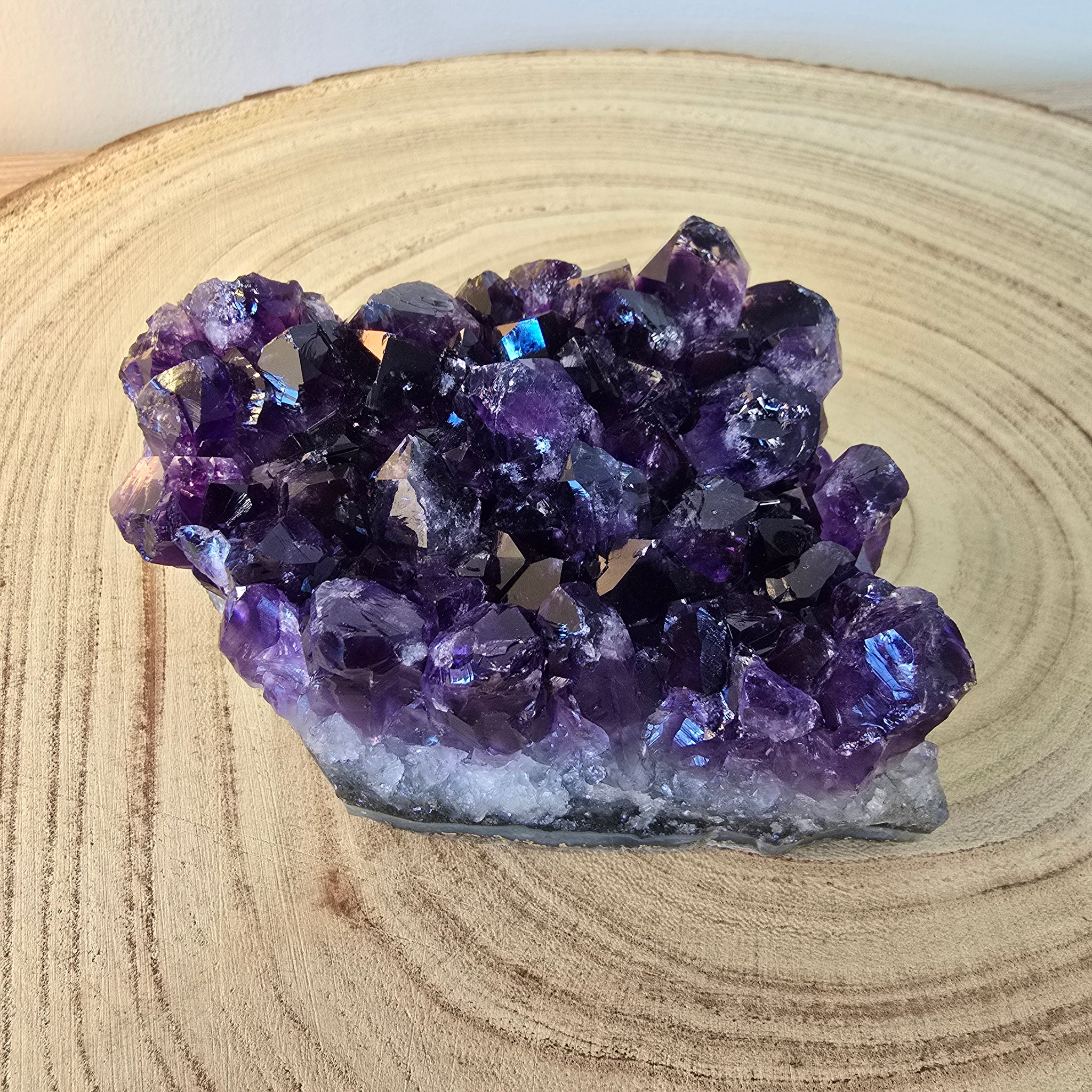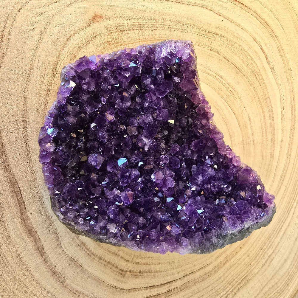 Les vertus des druses d’améthyste : Apporte une sensation de calme et de bien-être Contribue à l’équilibre mental, émotionnel et physique Aide à lutter contre les addictions (tabac, alcool, drogue...) Améliore le sommeil...